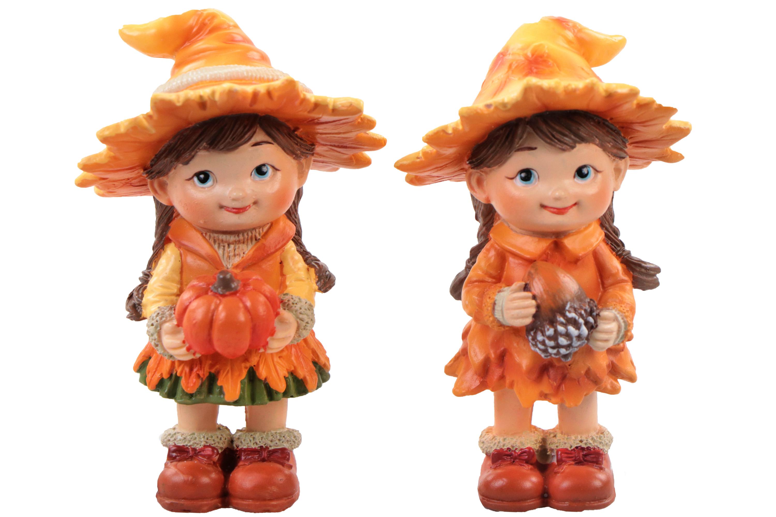 Produktinformationen "Poly Mädchenfigur mit Kürbis/Eichel, Blätterhut, orange, 5,5x5x8cm, 2fach sort."