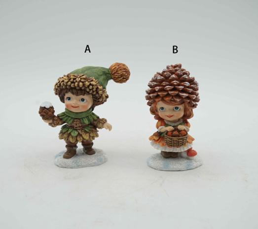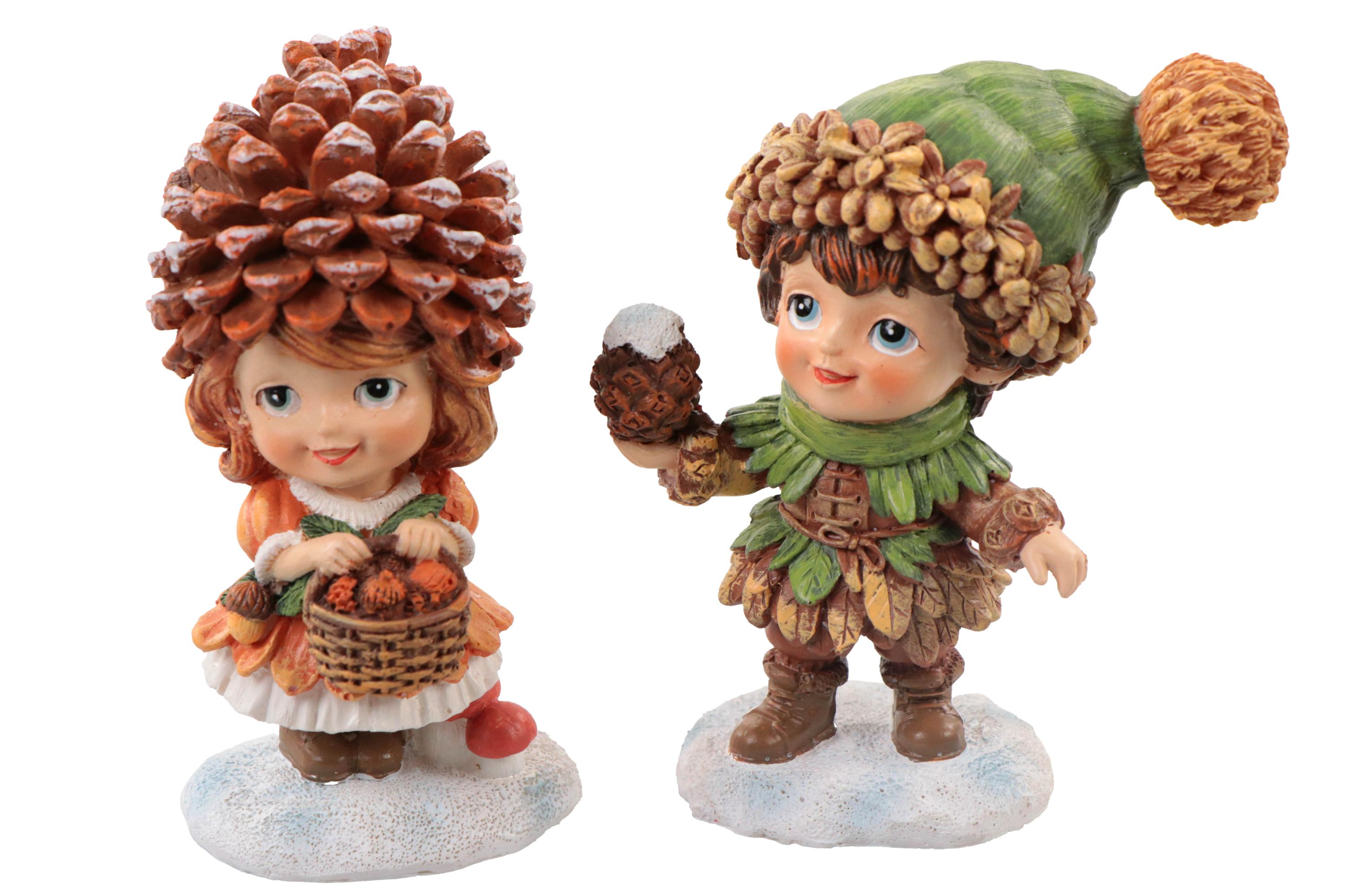Poly Tannenzapfen Mädchen/Junge, auf Schnee, 8,5x4,5x10,5cm, 2fach sort.