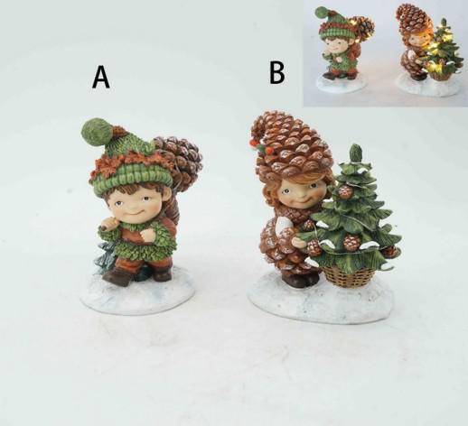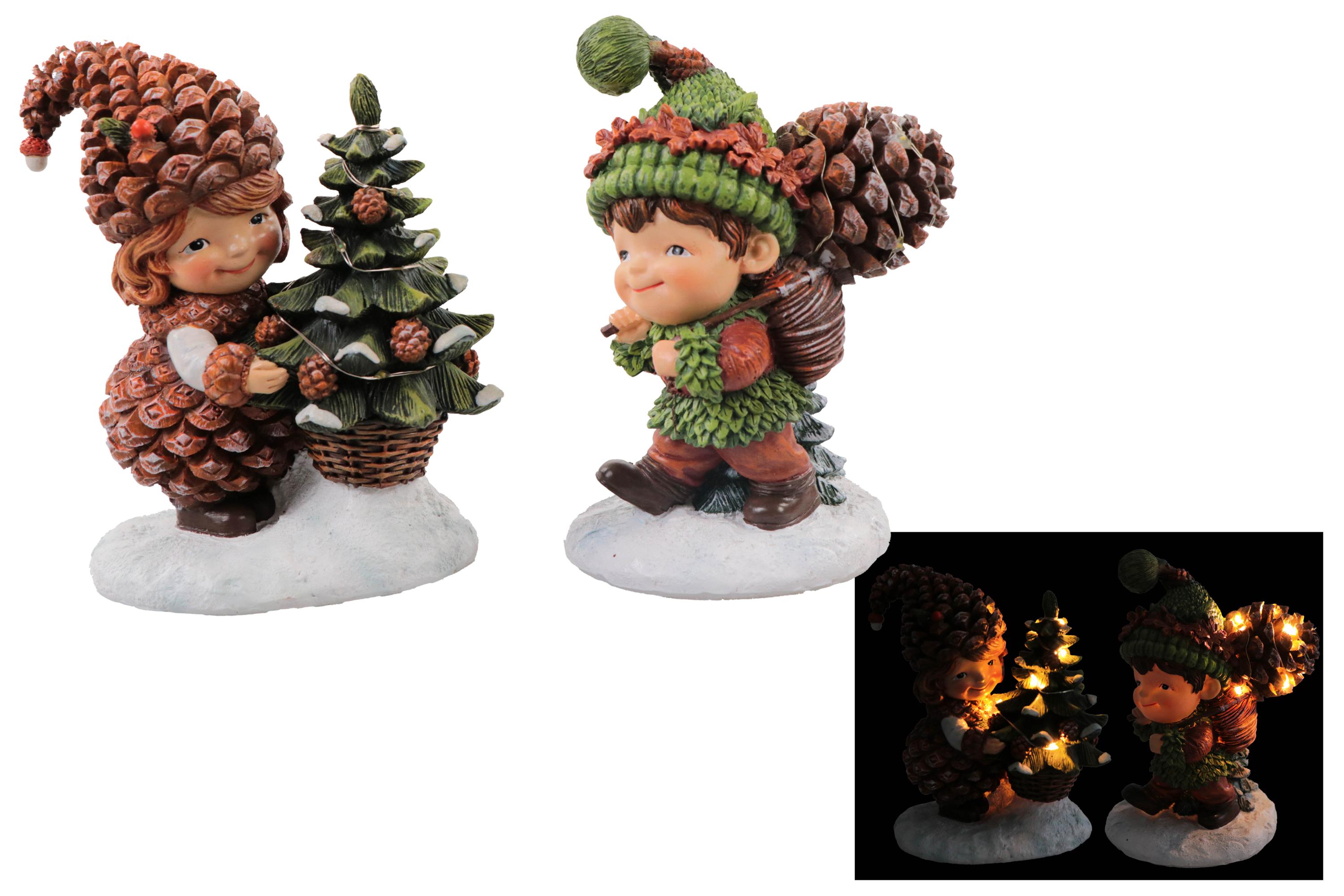 Poly Tannenzapfen Junge/Mädchen, mit Licht/Tannenbaum,10,5x8,5x15cm, 2fach sort.