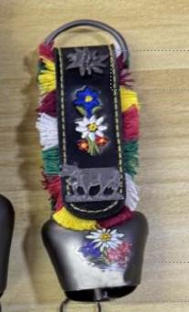 Weiterführende Links zu "4cm Metall Glocke matt silber Edelweiß Druck, bunte Fransen, Stick+Kuh+Edelweiß"