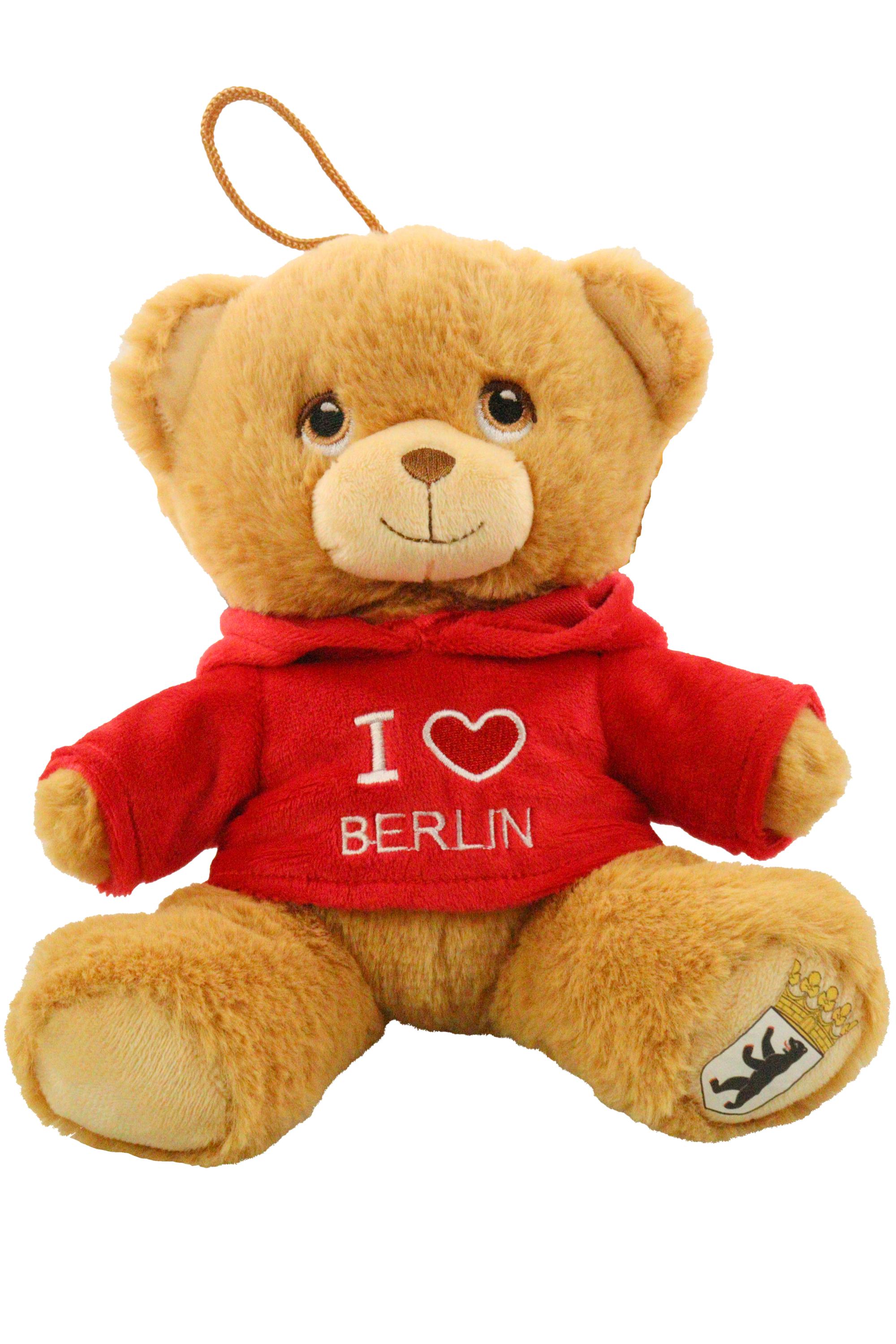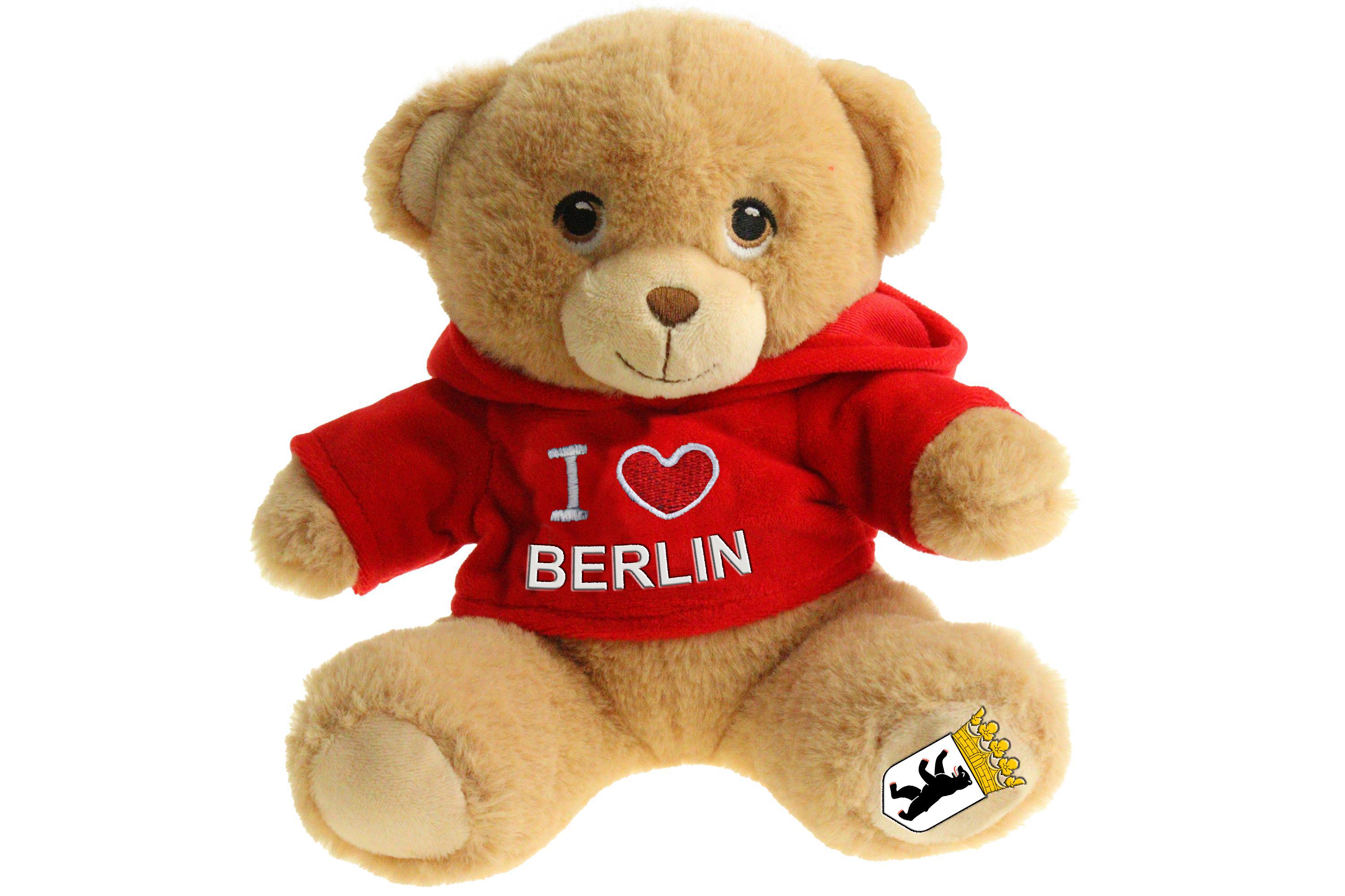 20cm Teddy "I love Berlin", roter Nicki-Hoodie, Berlin Wappen auf Fuß