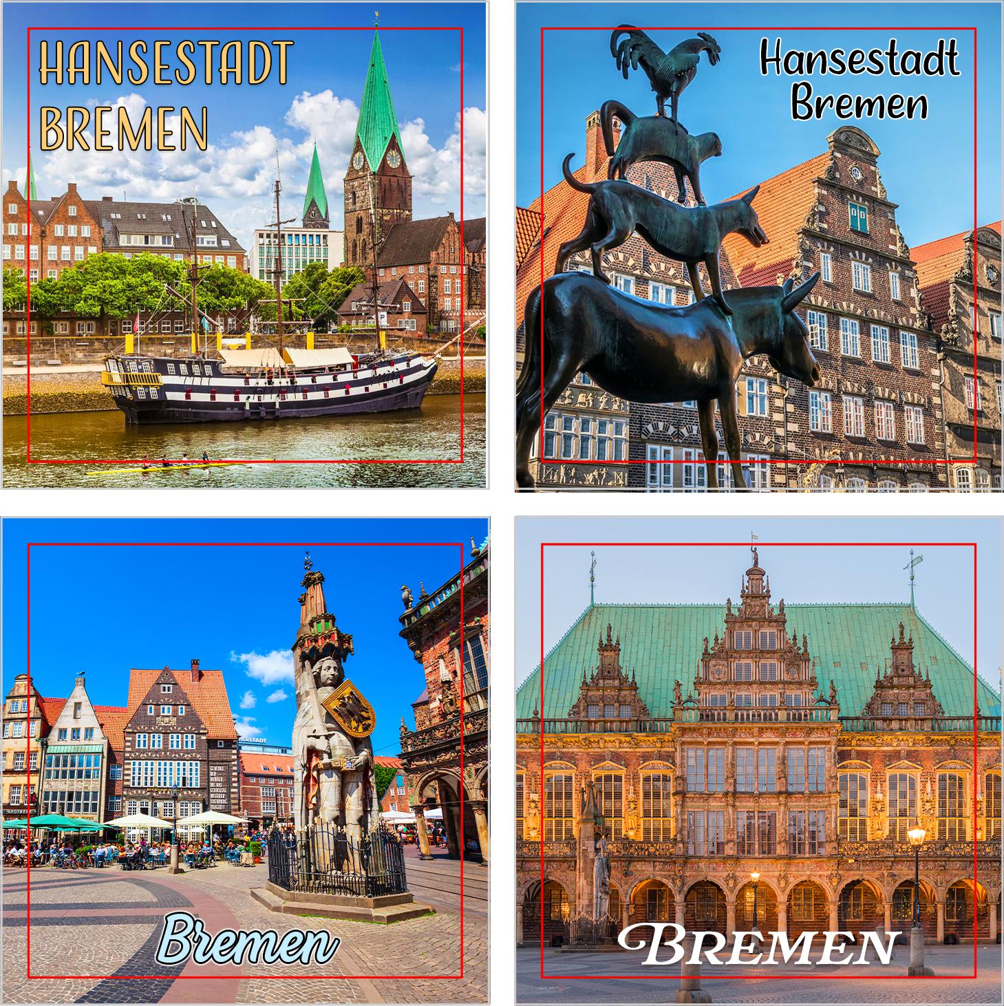 4er Set Epoxy Magnete "Bremen" je 4*4cm, (auf Karte 9,5*14cm)