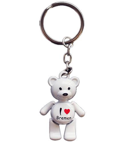 Schlüsselanhänger Bär in weiß "I love Bremen"