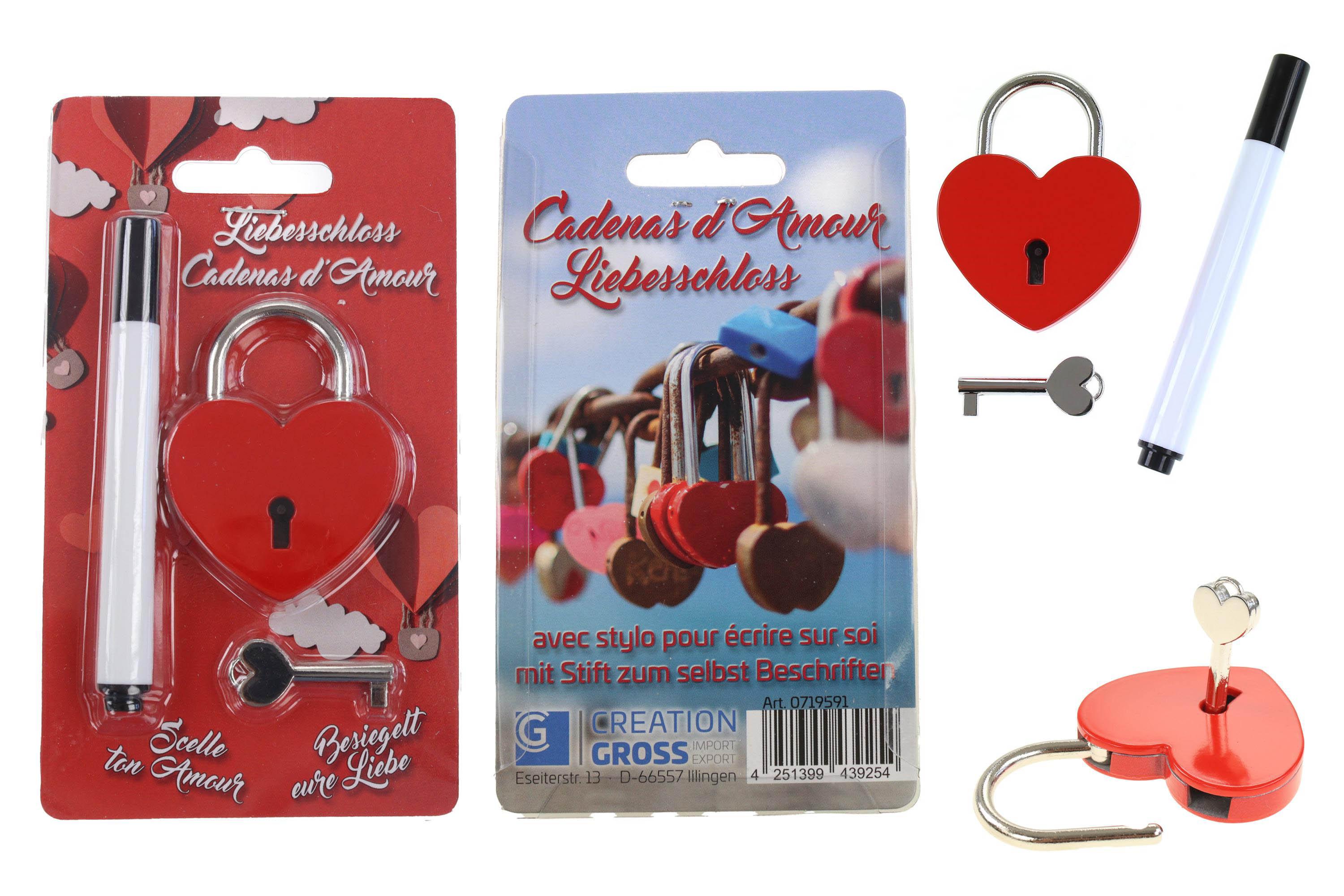 Produktinformationen "Liebesschloss Herzform rot, mit Stift, Karte allgemein"