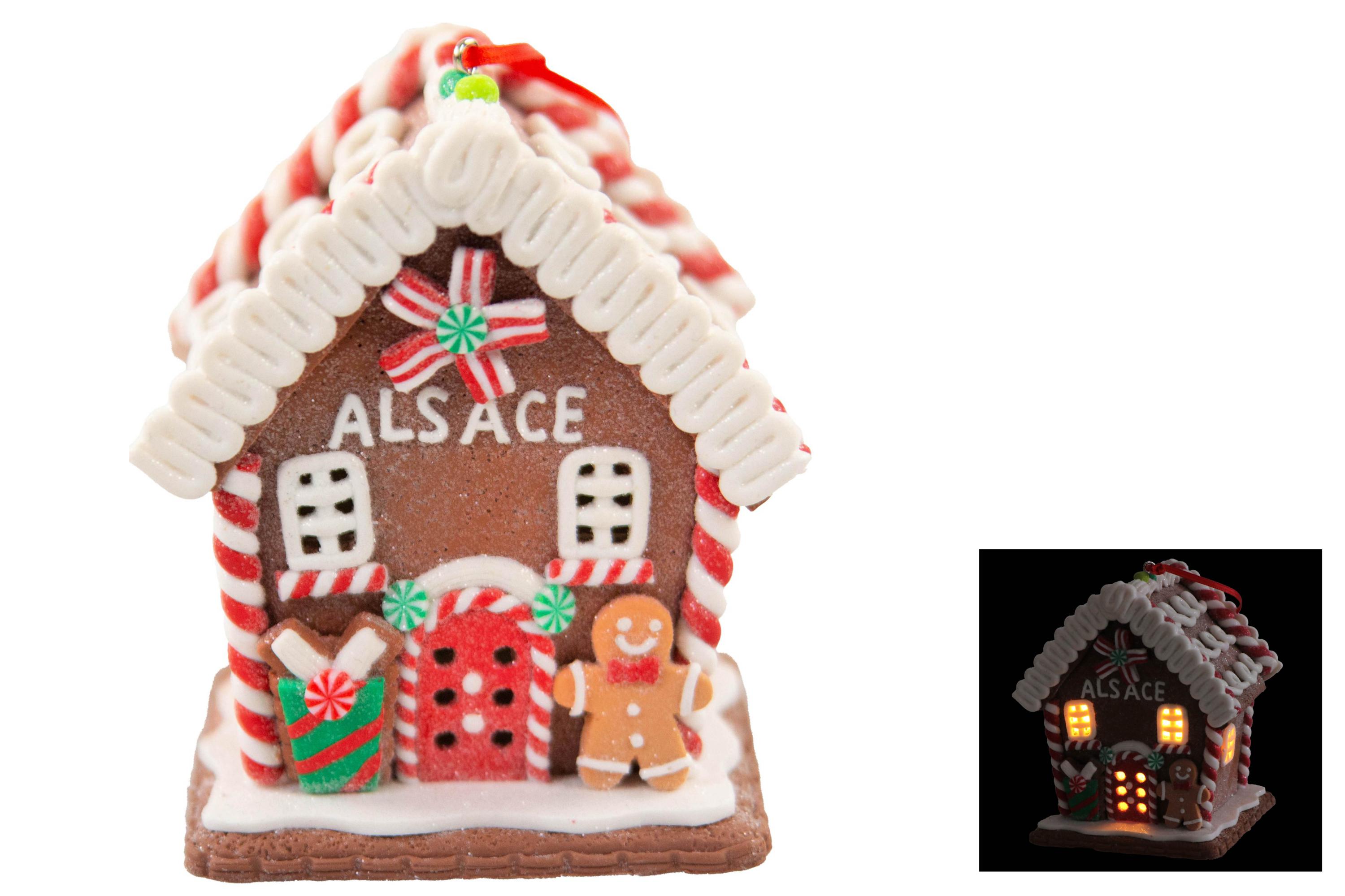 Produktinformationen "Soft PVC Lebkuchenhaus "Alsace" Aufhänger mit Licht, 8,9x7,6x8,9cm,"
