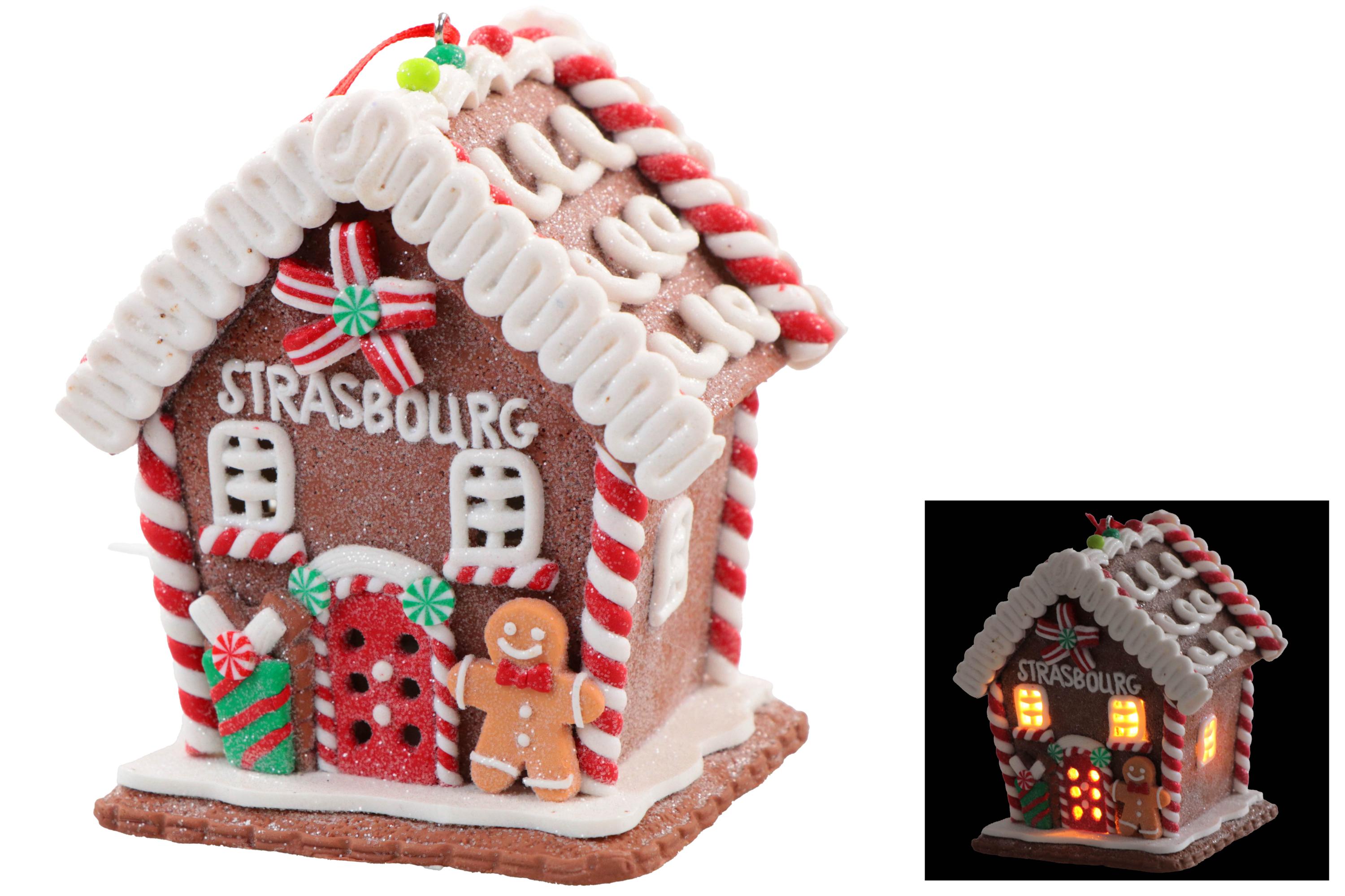 Soft PVC Lebkuchenhaus "Strasbourg" Aufhänger mit Licht, 8,9x7,6x8,9cm,