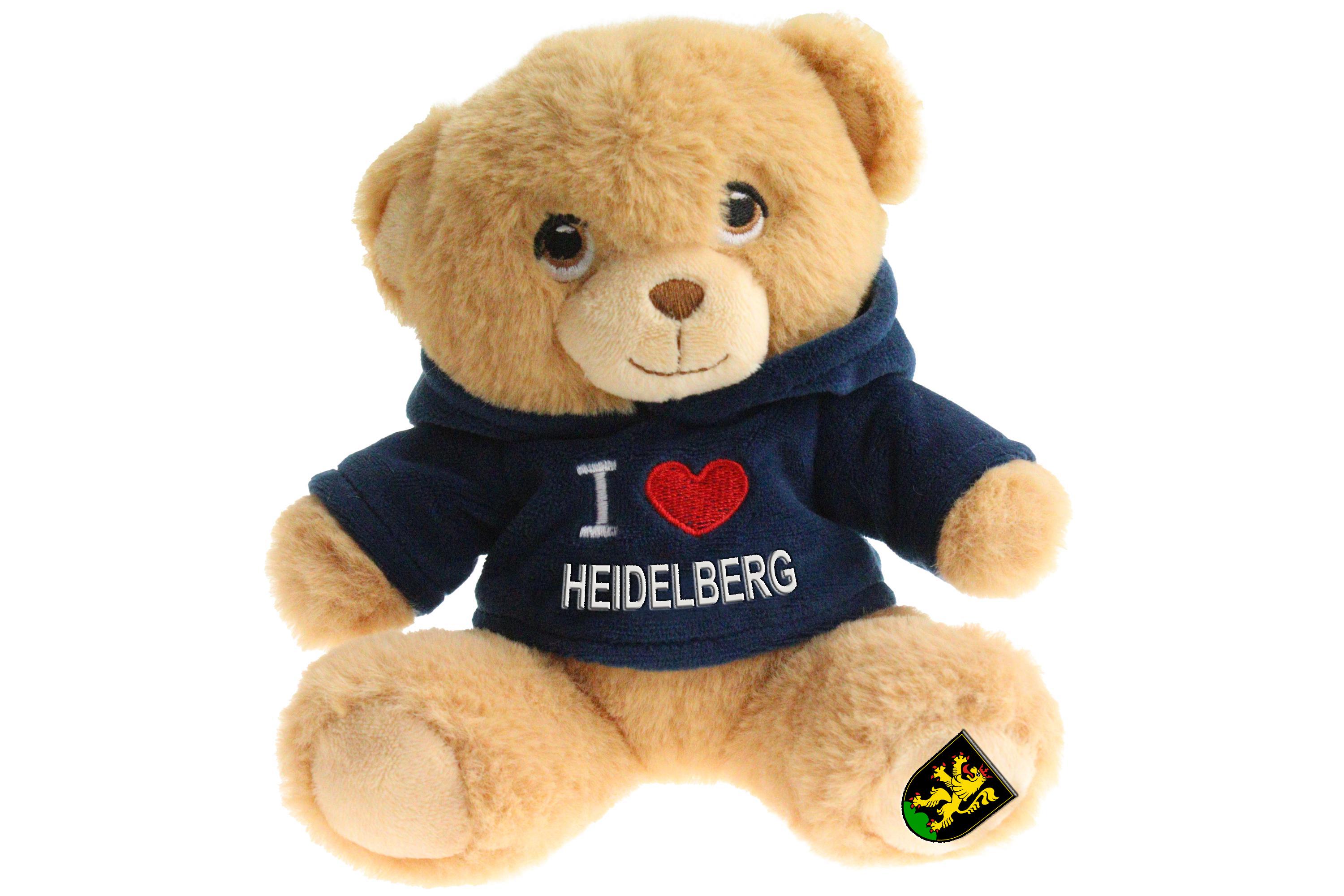Weiterführende Links zu "20cm Teddy "I love Heidelberg", blauer Nicki-Hoodie, Heidelberg Wappen auf Fuß"