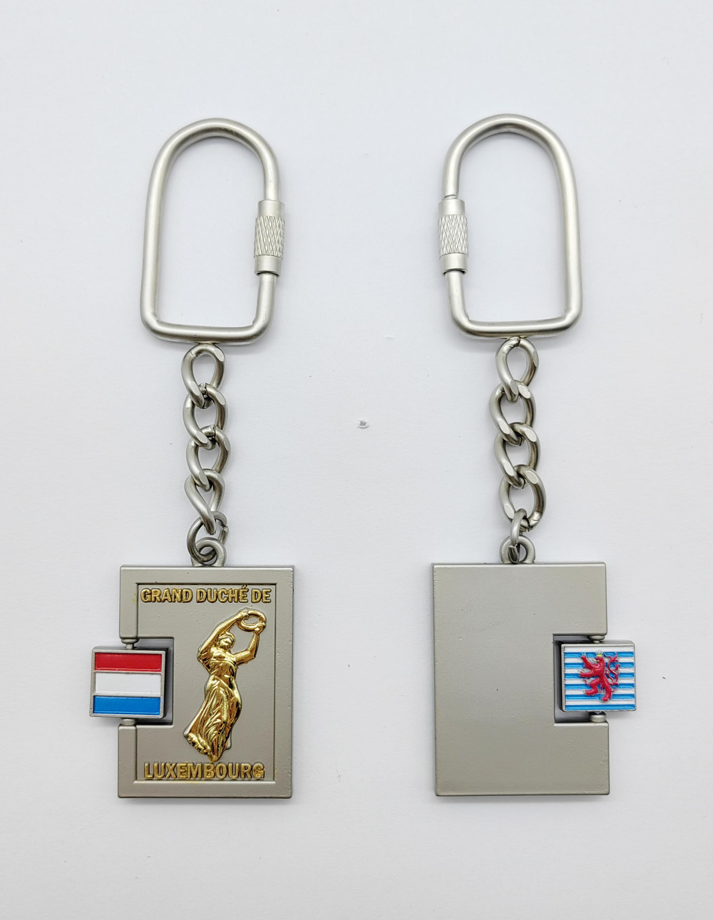 Schlüsselanhänger "Luxembourg", 3,8x3,3cm, drehbare Flagge, goldene Frau
