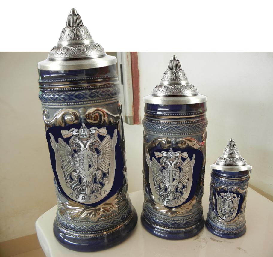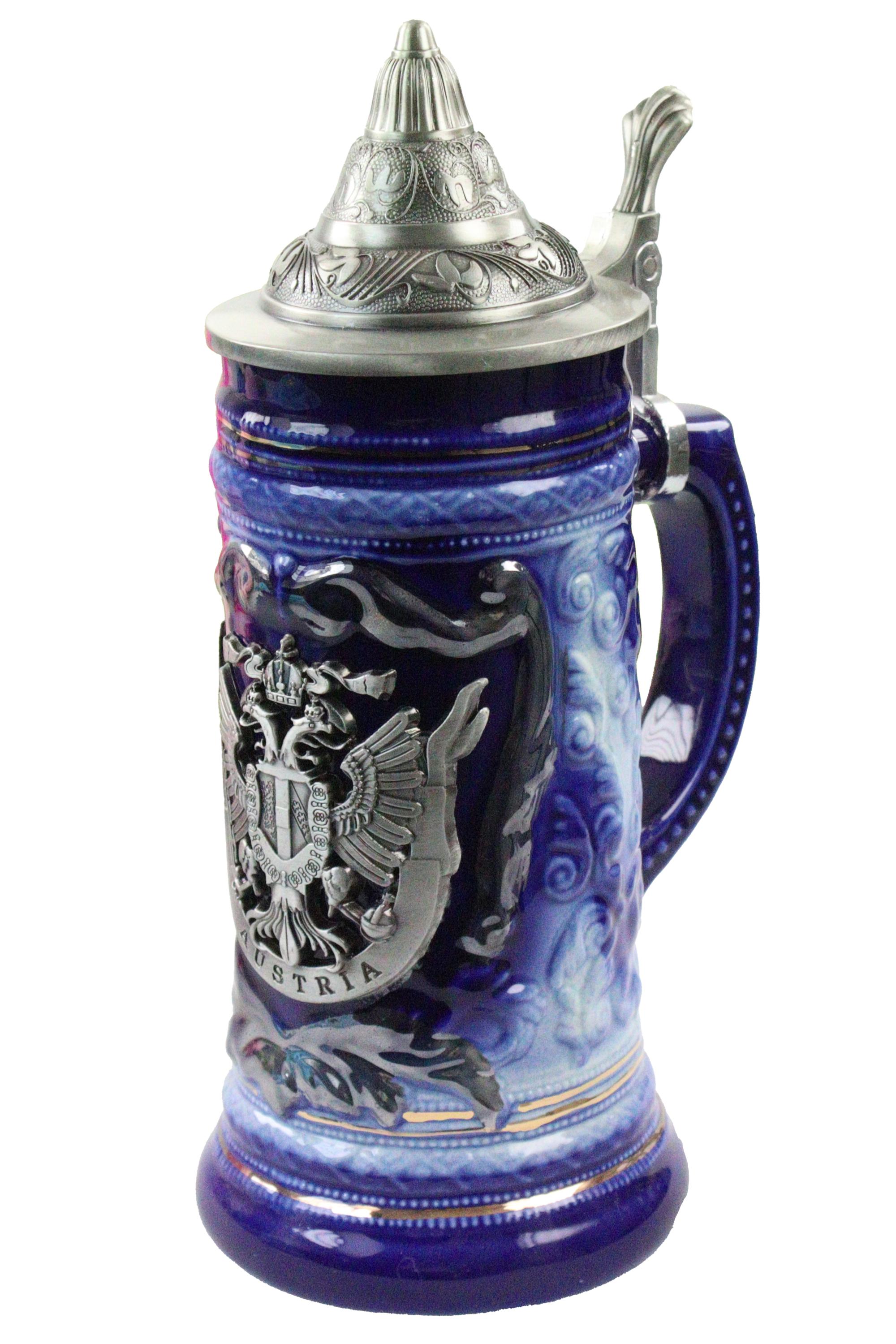 Weiterführende Links zu "Krug 0,5l "Austria" Metallwappen, blau, 18.5cm, mit Zinndeckel"