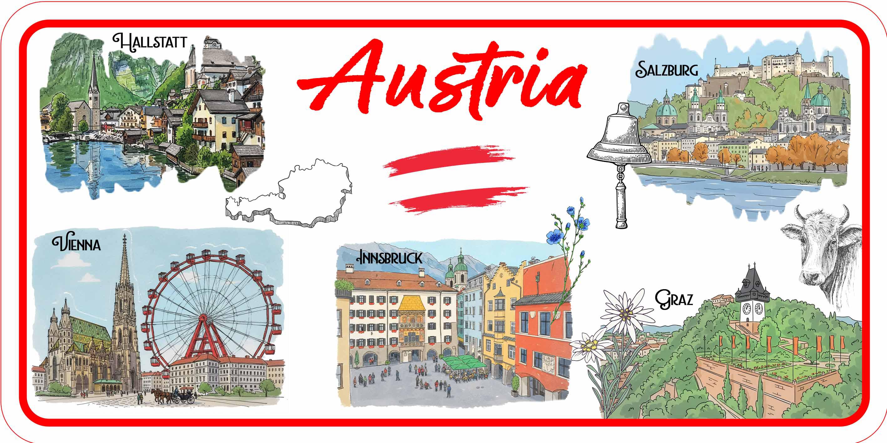 Flexibler PVC Magnet "Austria" 12*6cm