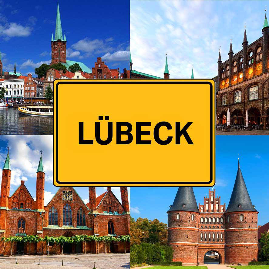 Weiterführende Links zu "Fotomagnet " Lübeck" 75 x 75 mm Ortsschild und 4 Bilder"