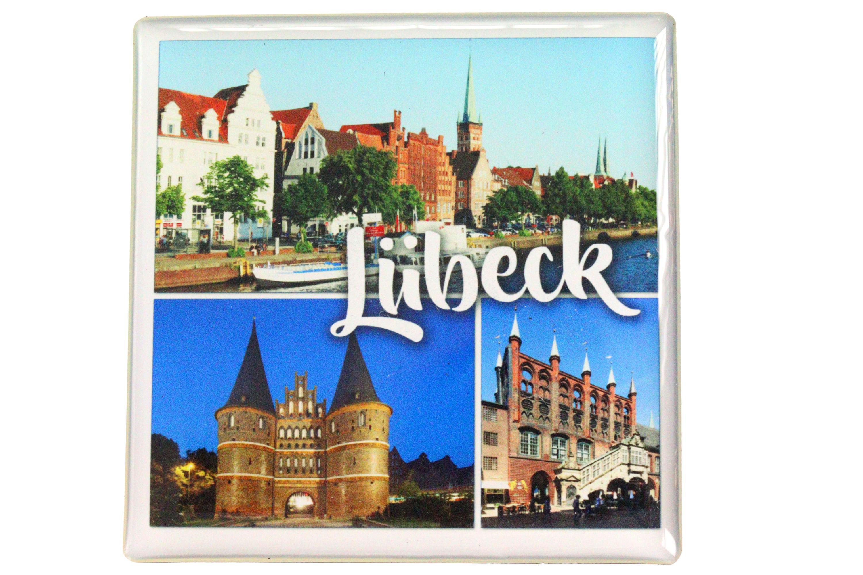 Produktinformationen "Fotomagnet " Lübeck" 75 x 75 mm Ortsschild und 4 Bilder"