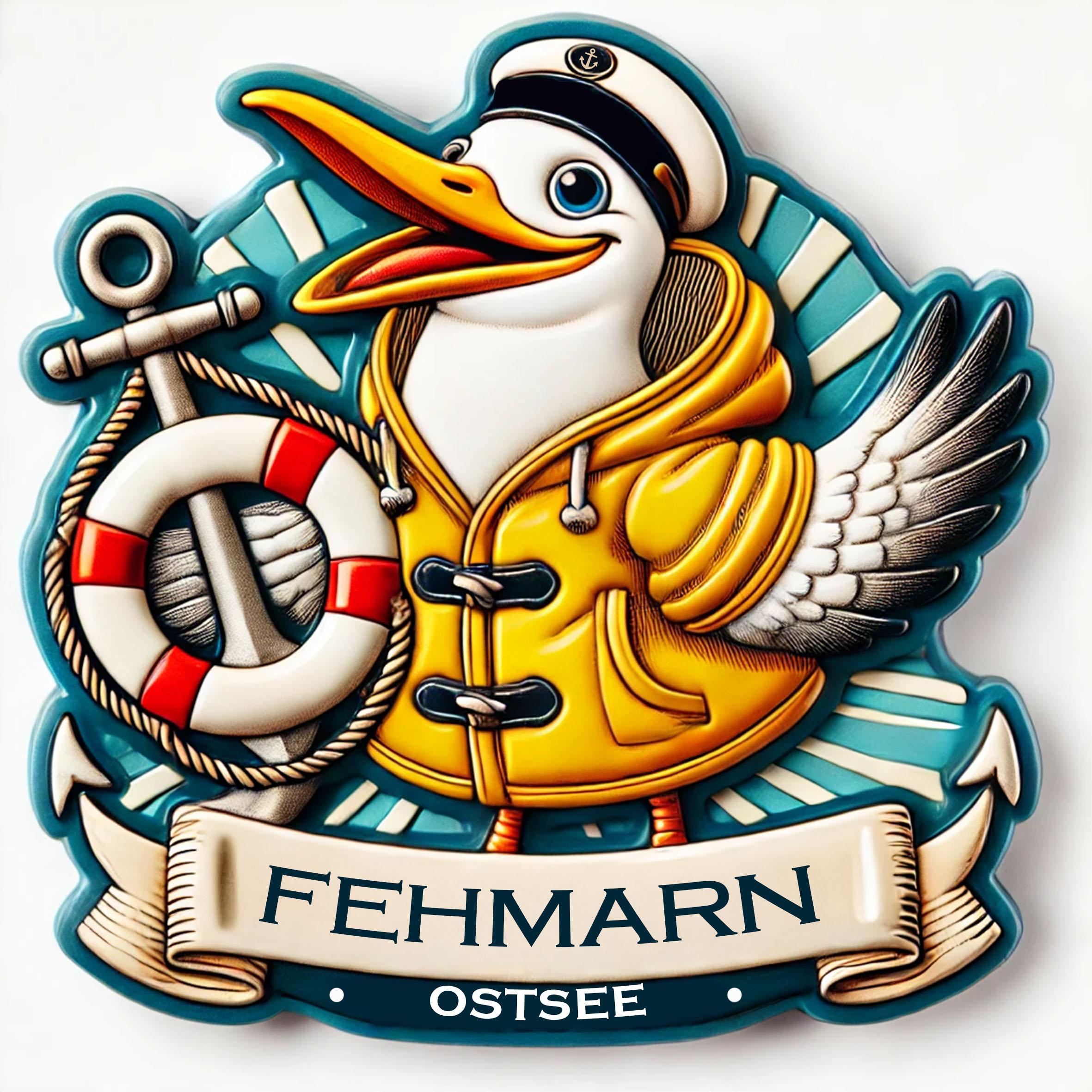 Weiterführende Links zu "gedruckter Polymagnet "FEHMARN" Möwe Kapitän, Anker, gelbe Regenjacke 7*7cm"