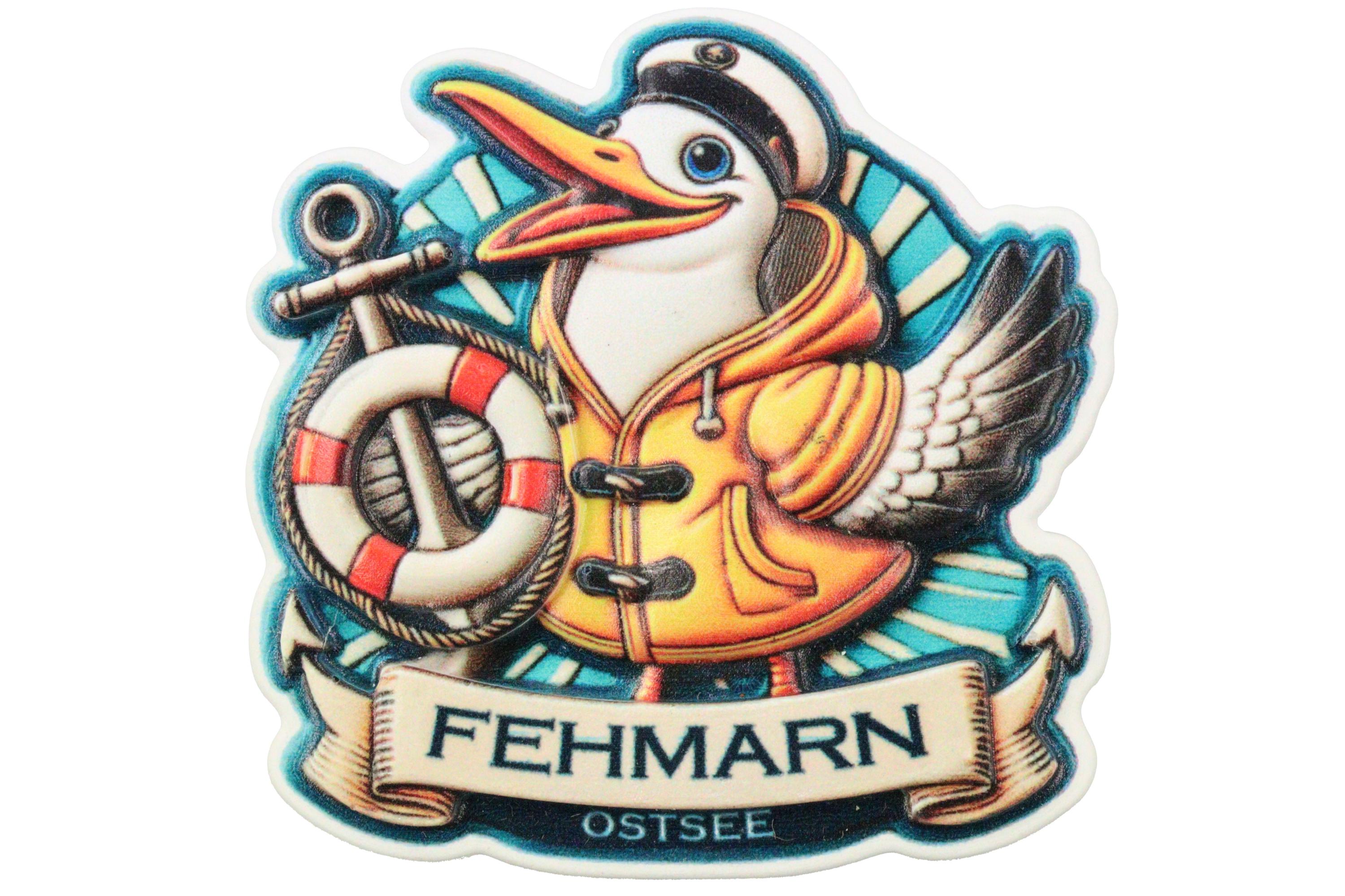 gedruckter Polymagnet "FEHMARN" Möwe Kapitän, Anker, gelbe Regenjacke 7*7cm