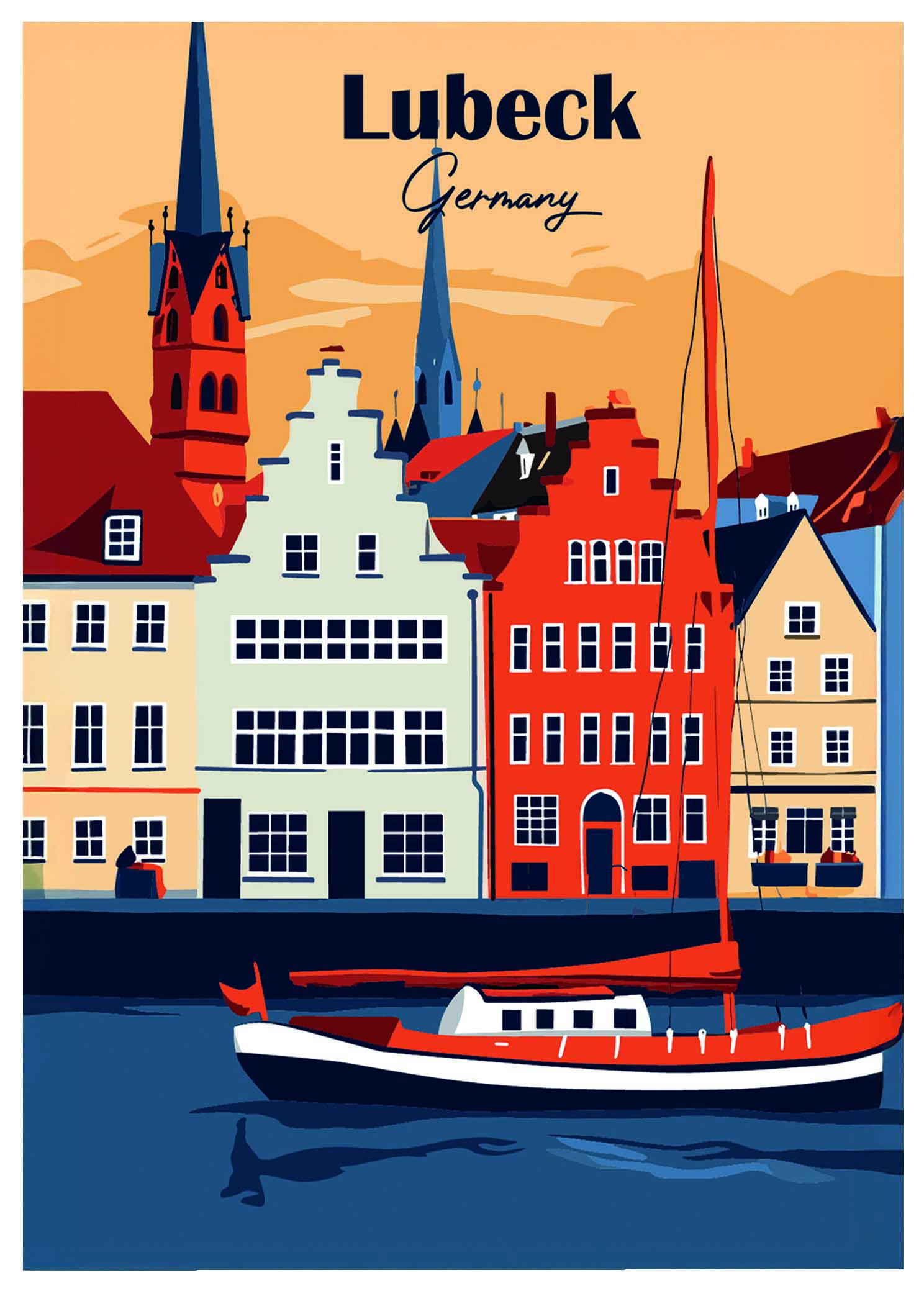 Weiterführende Links zu "Postkarte A6 "Lübeck", Zeichnung, 148*104mm"