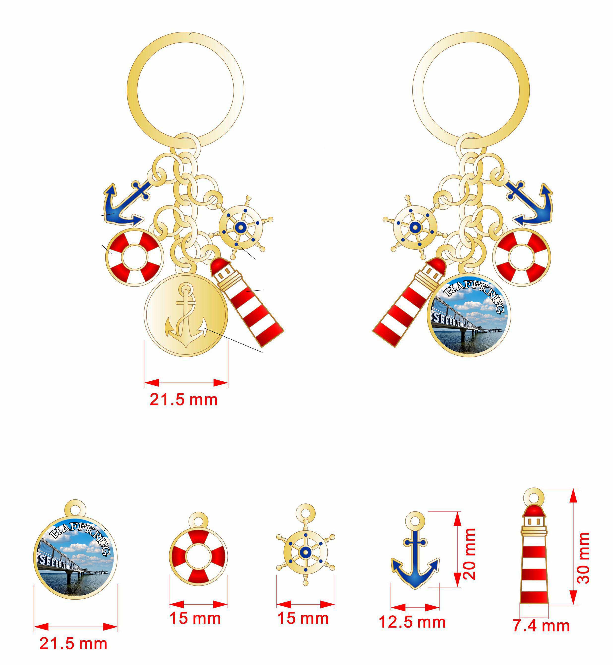 Weiterführende Links zu "goldene Schlüsselkette, maritime charms, "Haffkrug" Sticker"