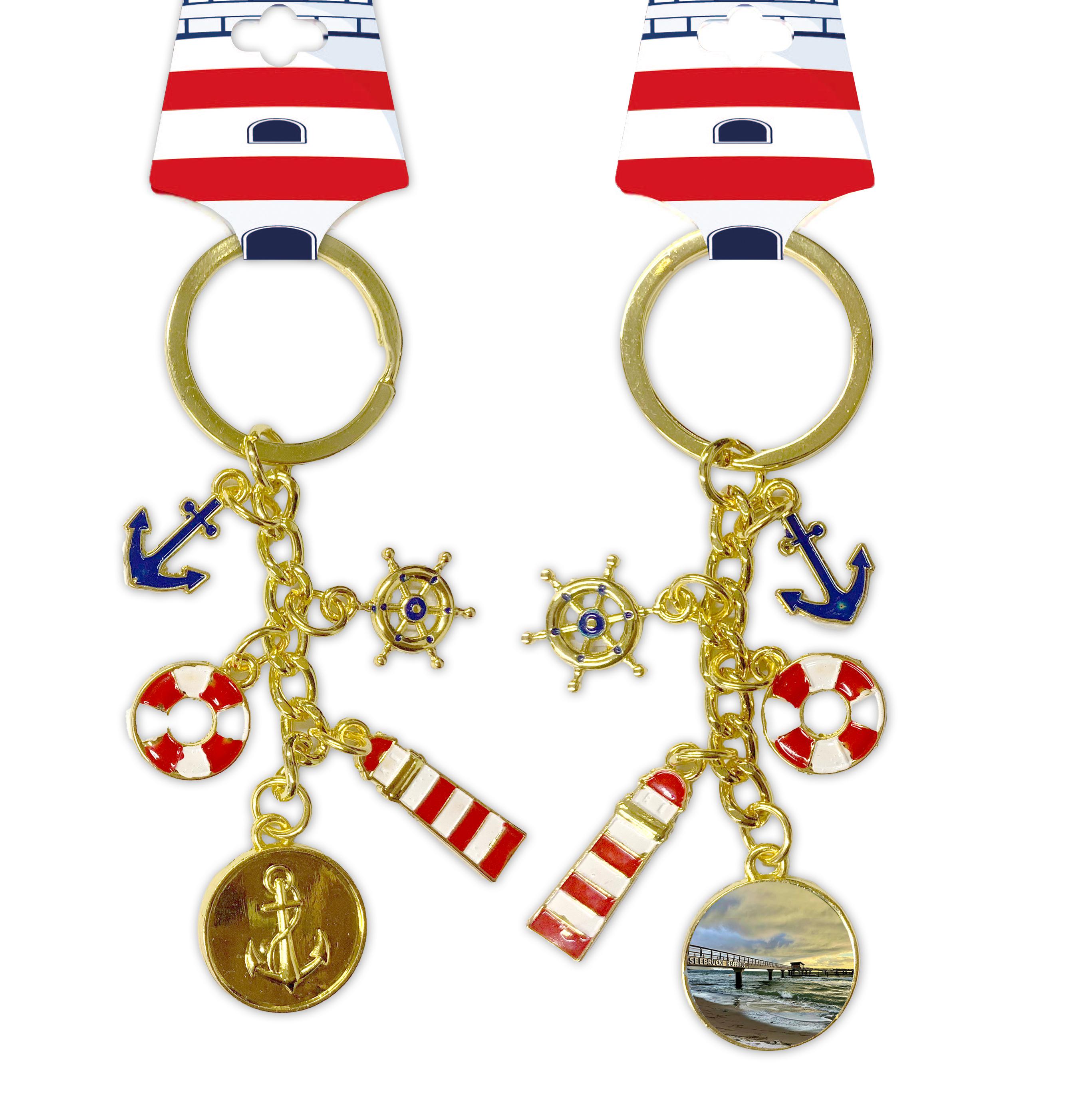goldene Schlüsselkette, maritime charms, "Haffkrug" Sticker
