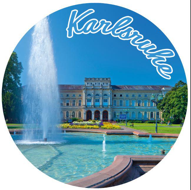 Weiterführende Links zu "Epoxy Magnet rund "Karlsruhe" Schloss, Brunnen, Ø 67mm"