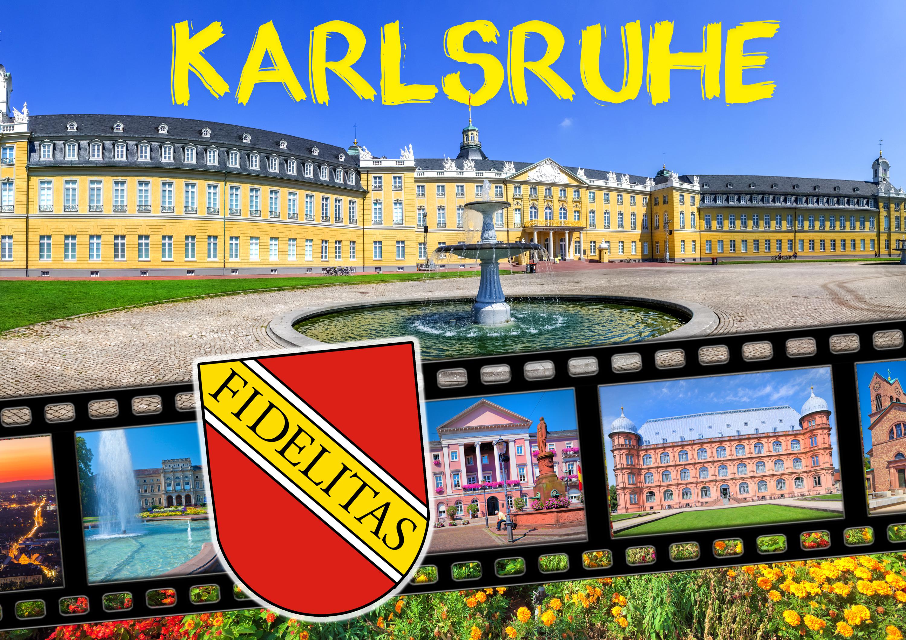 Weiterführende Links zu "Große Postkarte "Karlsruhe" Filmrolle, Fidelitas, Schlossbrunnen 17,5x12cm"