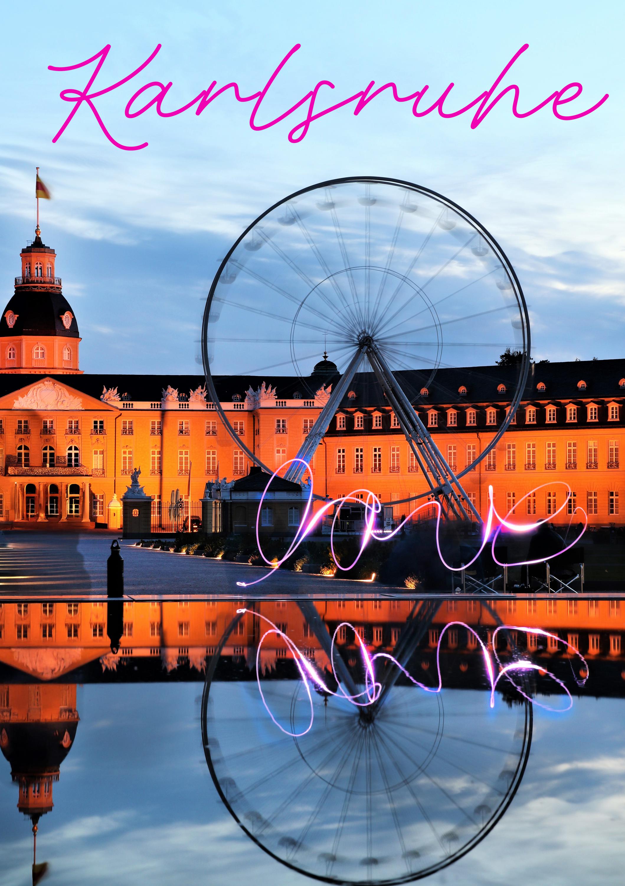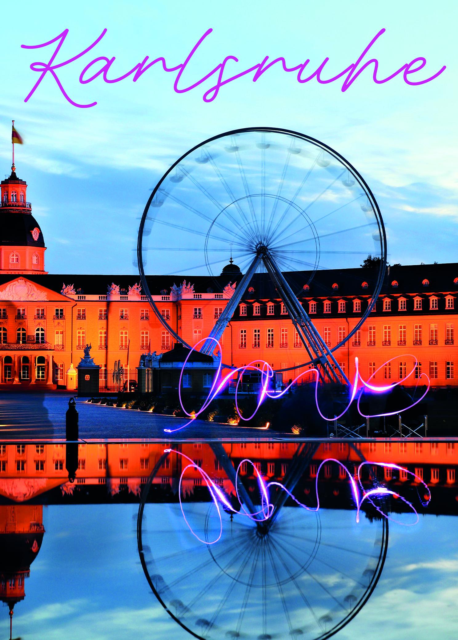Weiterführende Links zu "Große Postkarte "Karlsruhe" Schloss, Riesenrad am Abend 17,5x12cm"