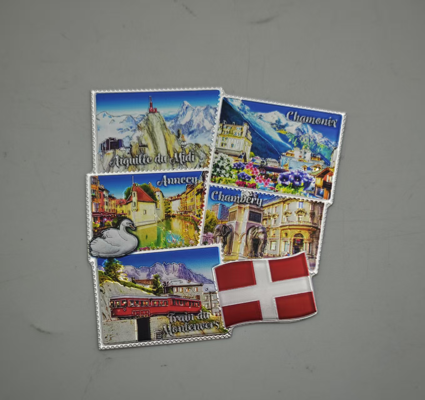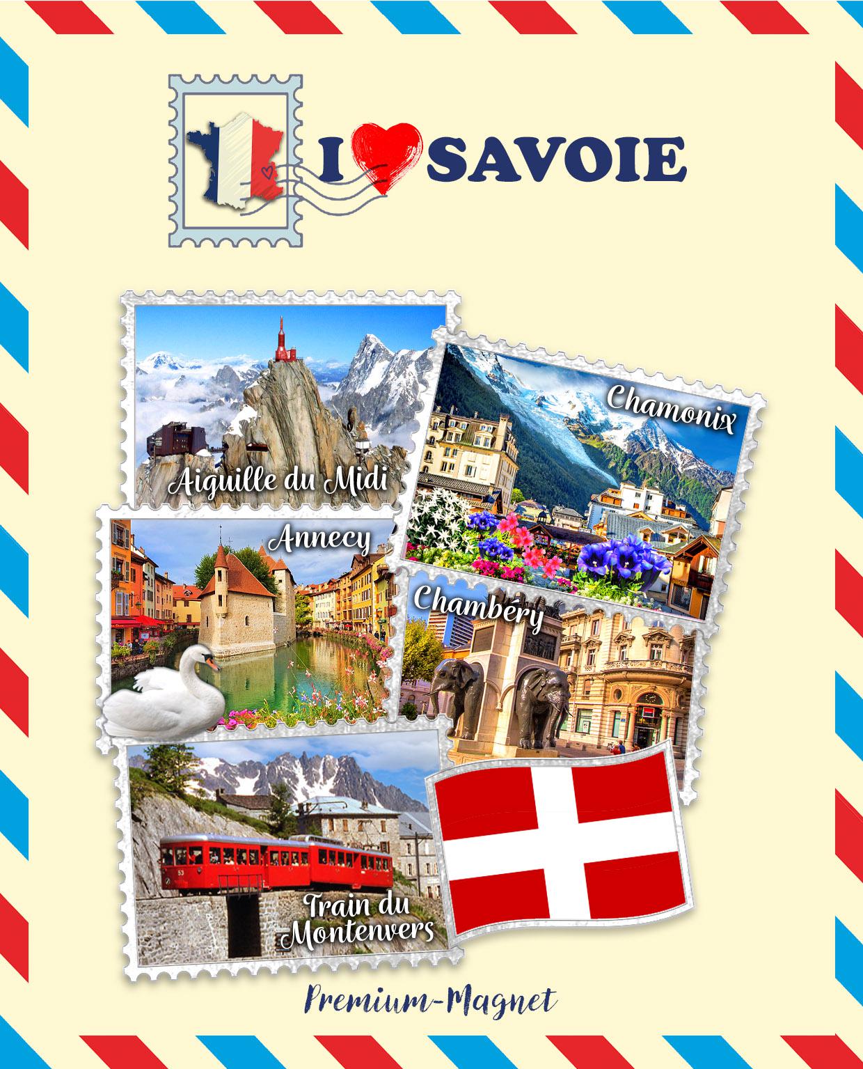 Weiterführende Links zu "Magnet Mehrfach Briefmarke "SAVOIE" 8*8cm, silber geprägt auf Karte 11*10cm"