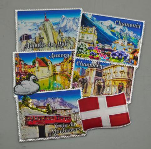 Produktinformationen "Magnet Mehrfach Briefmarke "SAVOIE" 8*8cm, silber geprägt auf Karte 11*10cm"