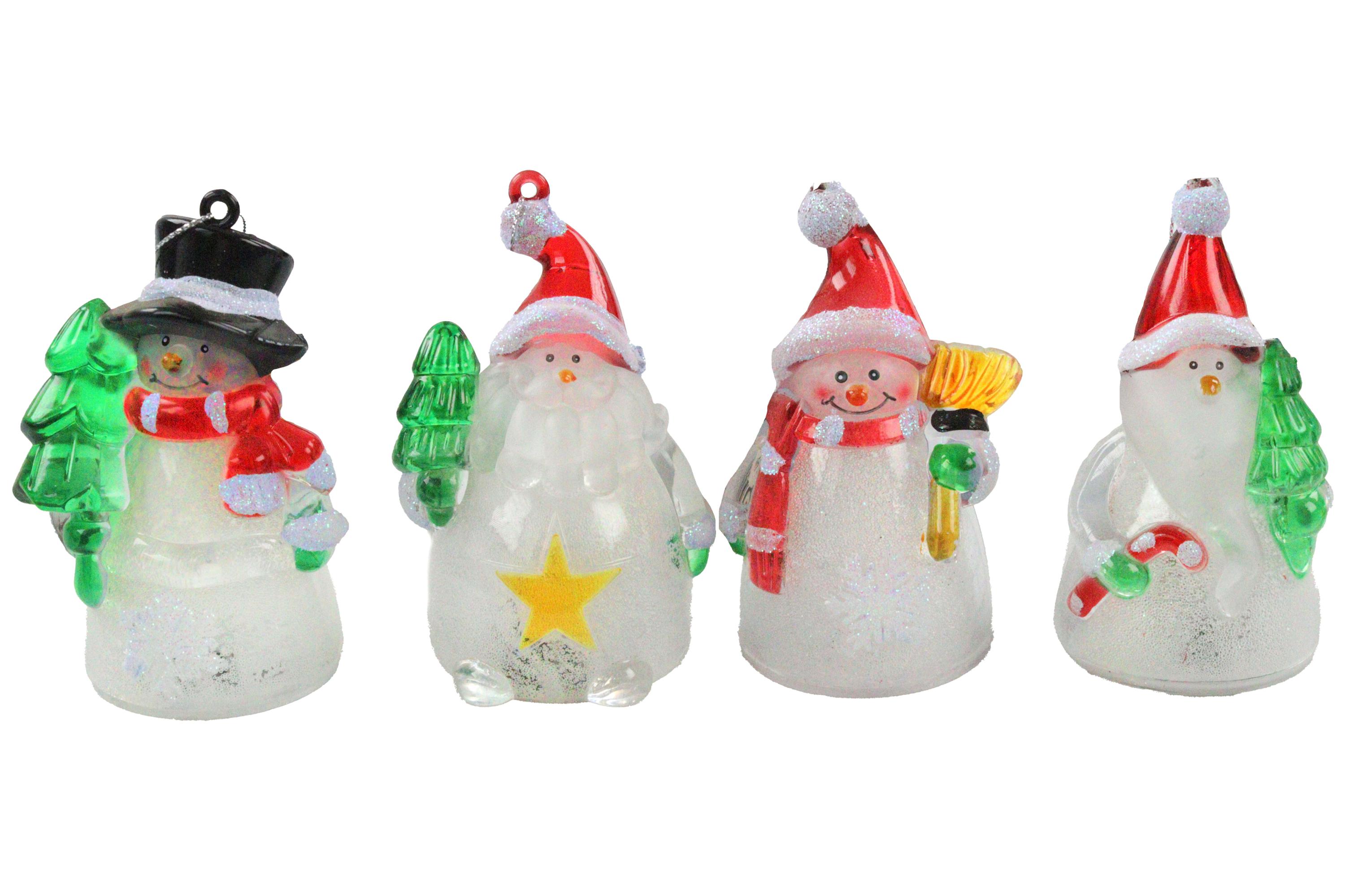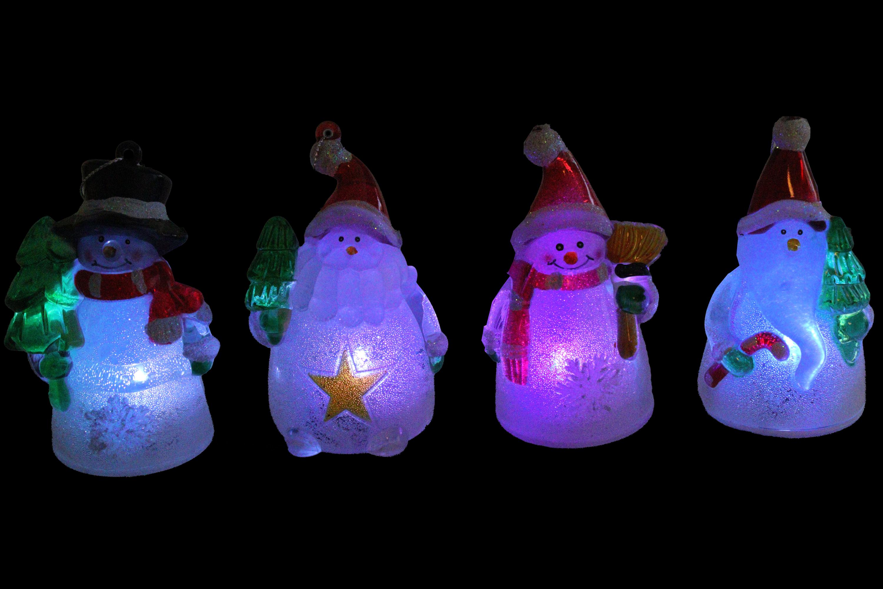 9cm Schneemann zum Hängen, Plastik, LED Farbwechsel, 4fach sortiert