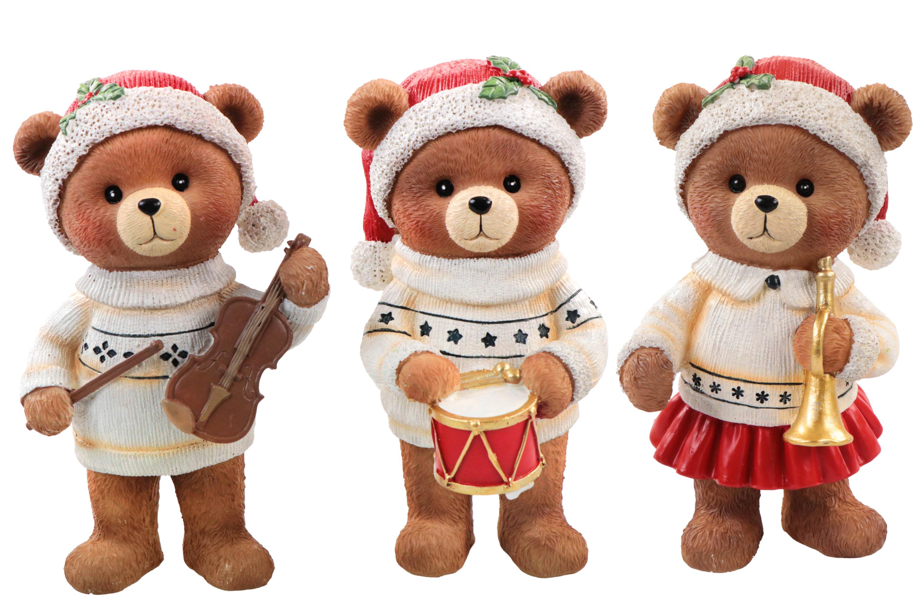 Poly Weihnachtsbärchen zum Hinstellen, Musikinstrumente, 9x7,5x15cm, 3fach sort.