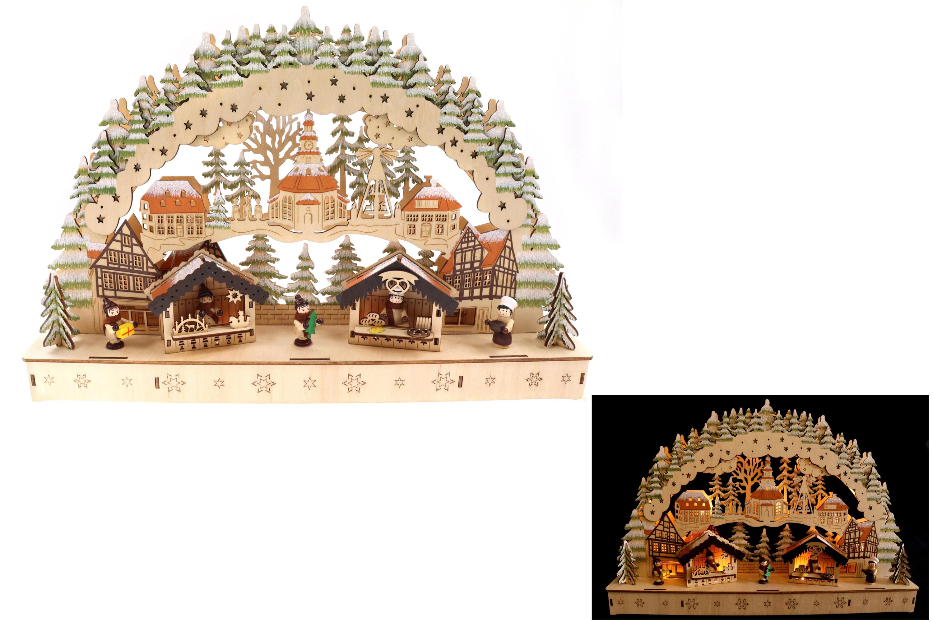 Weiterführende Links zu "Holzschnitt Lichterbogen, zwei Verkaufsstände, Glitzer, 44,5*8*30cm"