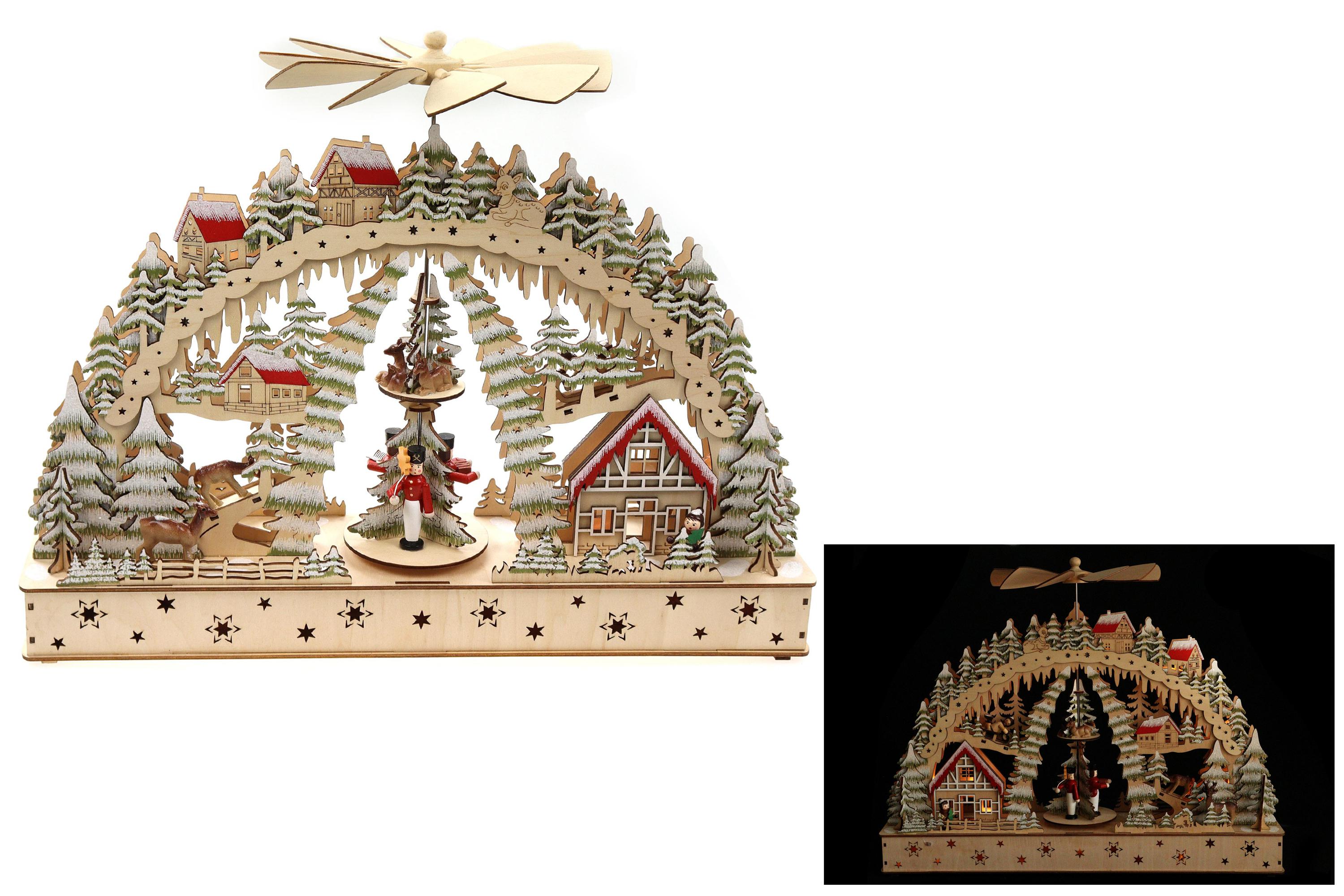 Weiterführende Links zu "Holzschnitt Lichterbogen mit Rotor, Licht, Glitzer, 49,5*8*33cm"