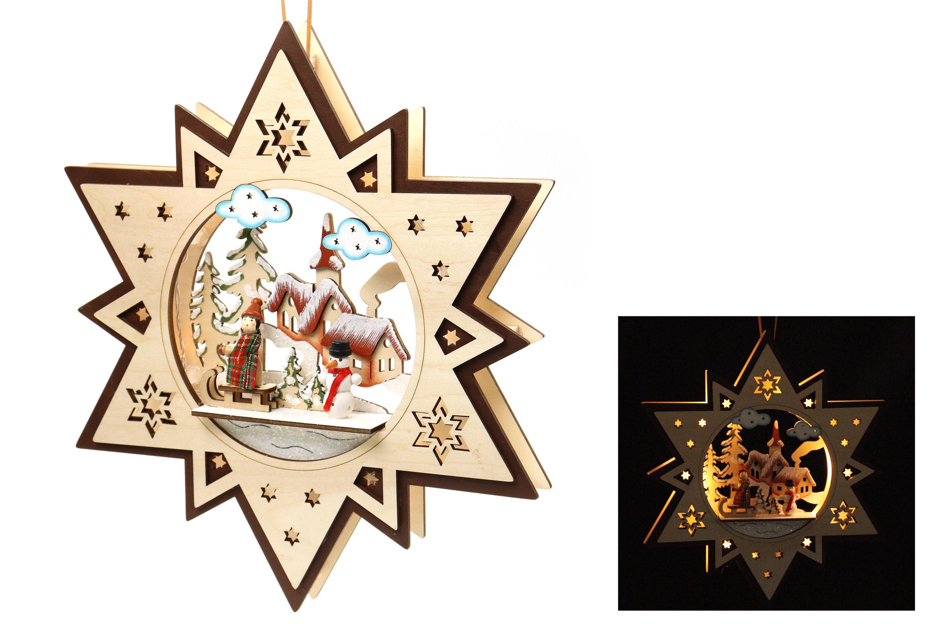 Produktinformationen "0030070 Holzschnitt Hänger Stern mit Licht, Glitzer, beidseitig, 26*3,5*30cm"
