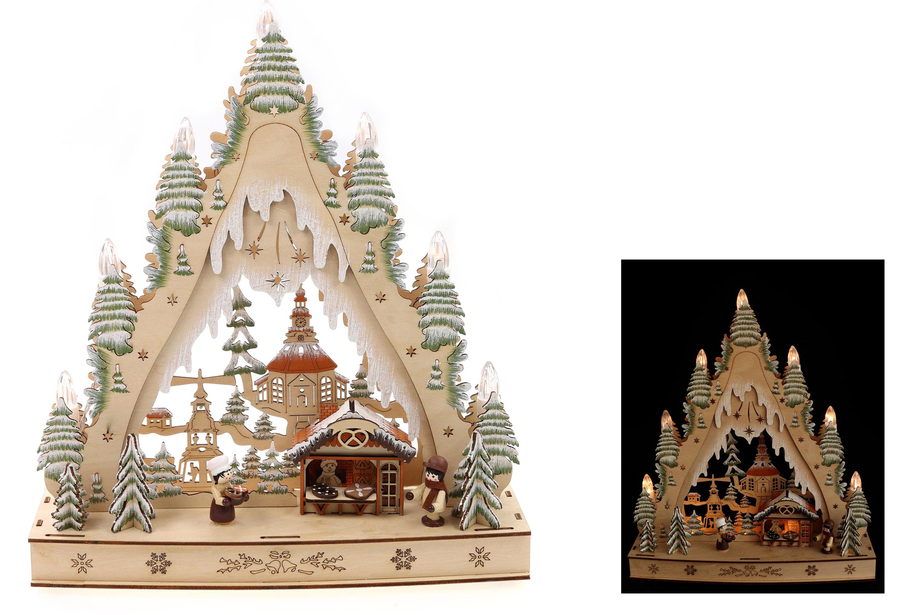 Weiterführende Links zu "Holzschnitt Lichterspitze Winterdorf, Licht, Glitzer, 30*8,5*35cm"