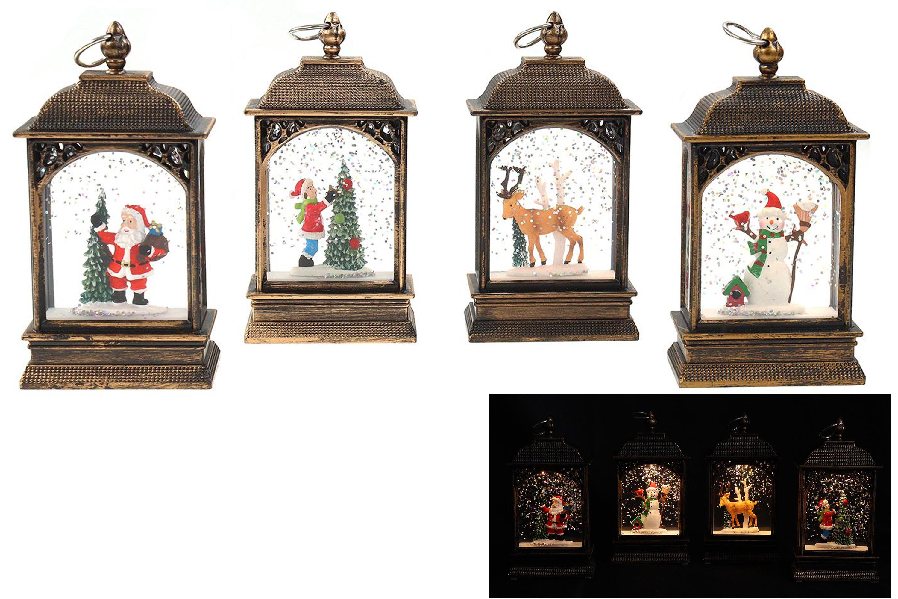 kleine Laterne weihnachtlich, Licht, Glitzerantrieb, 7*4*13,5cm, 4fach sortiert
