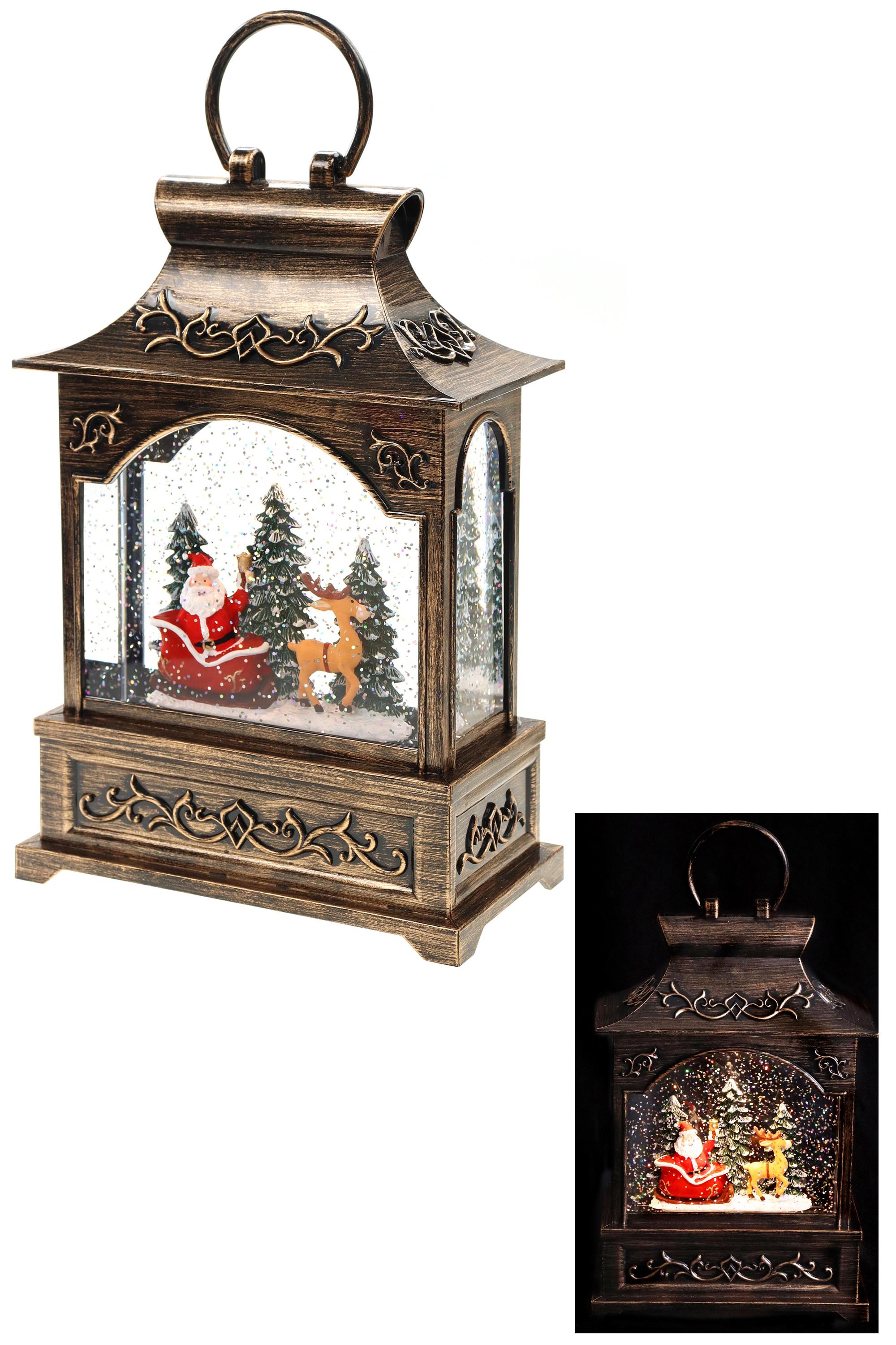 Weiterführende Links zu "Laterne Weihnachtsmann, Schlitten, Musik, Licht, Glitzerantrieb, 16,6*8,8*25cm"