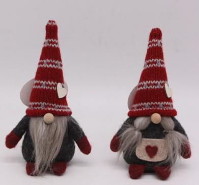 Wichtel aus Textil,gestreifte Mütze, grau/rot/weiß, Herz, H:13cm, 2fach sort.