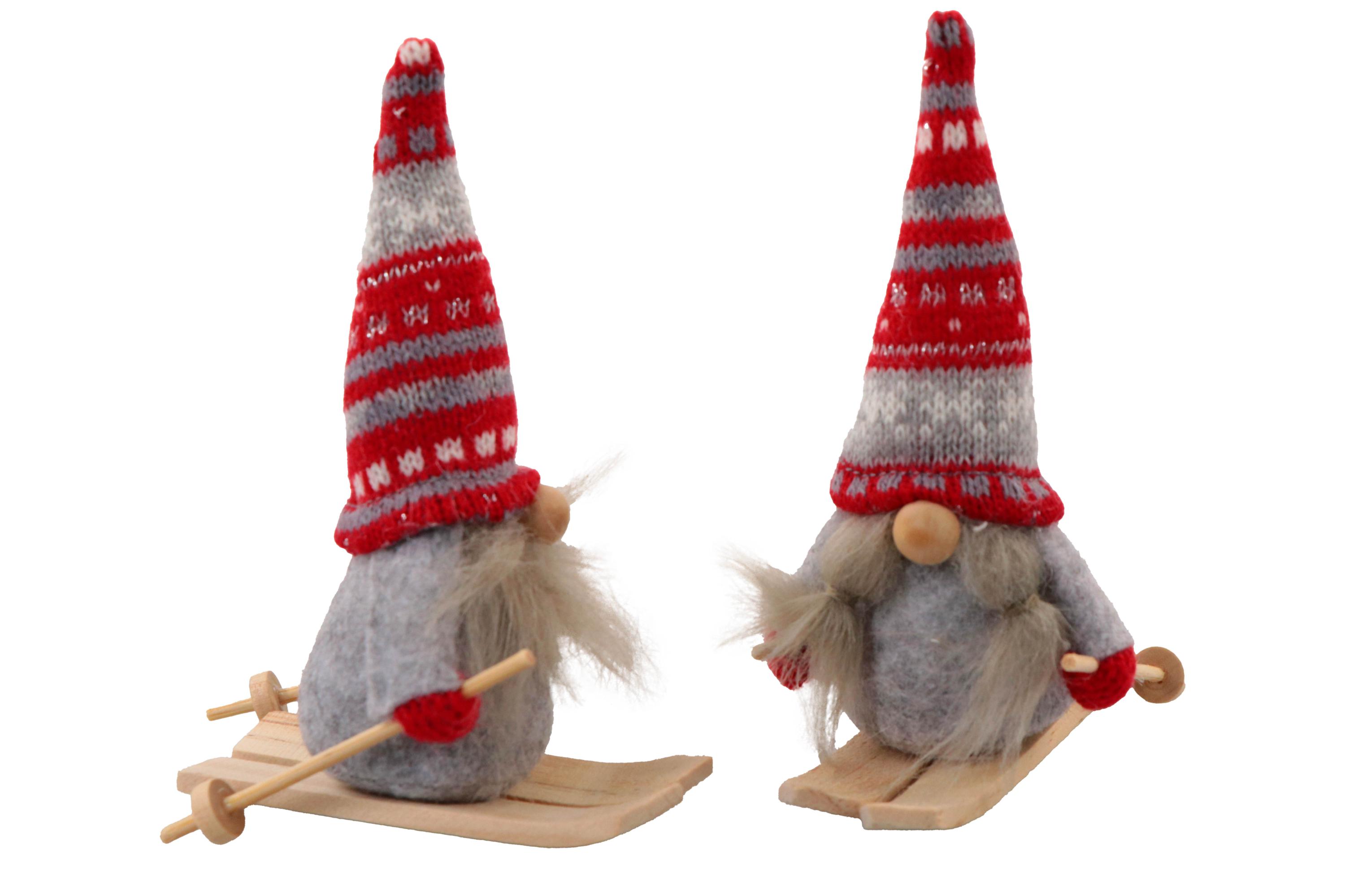 Wichtel aus Textil auf Ski, grau/rot, H:11cm, 2fach sort.